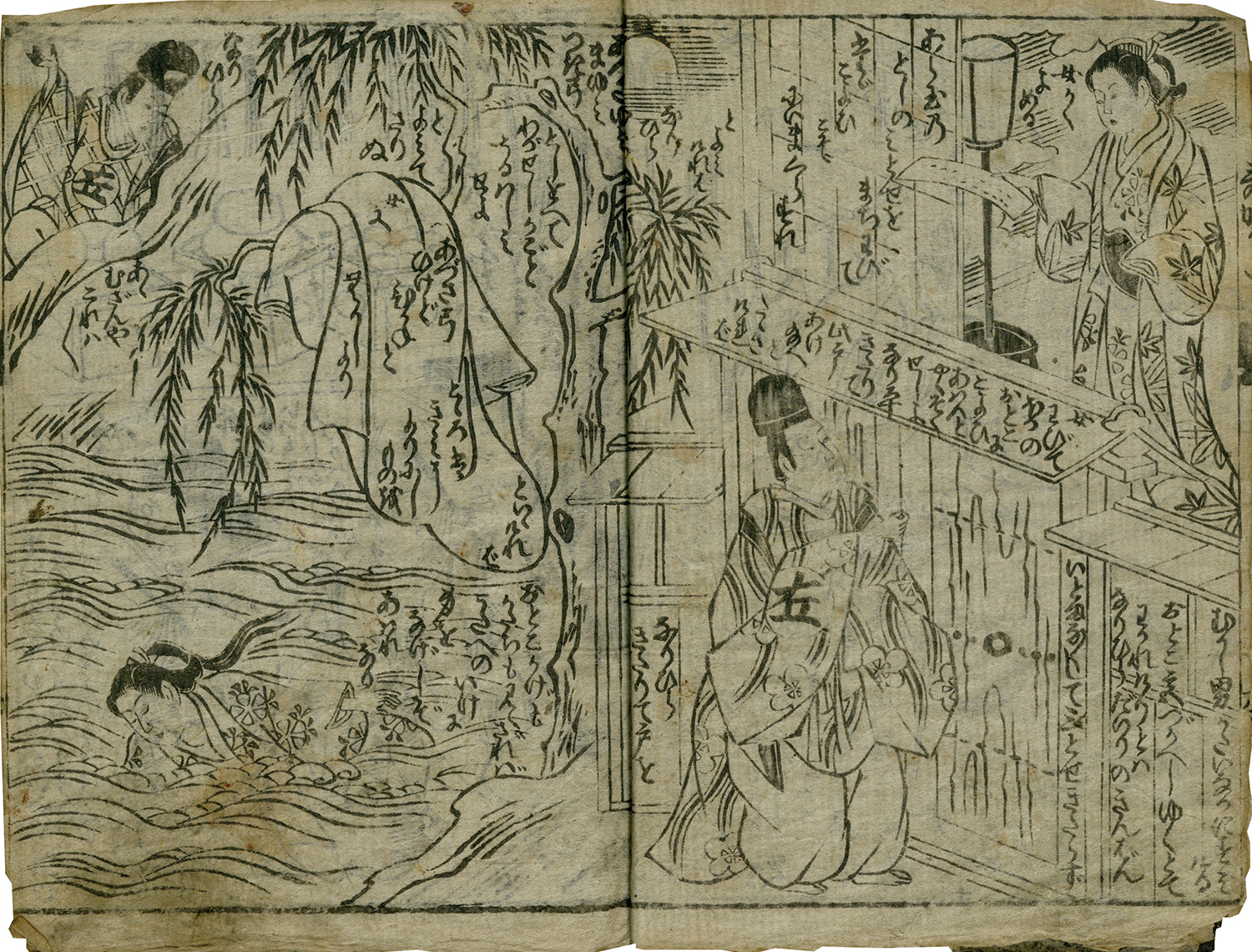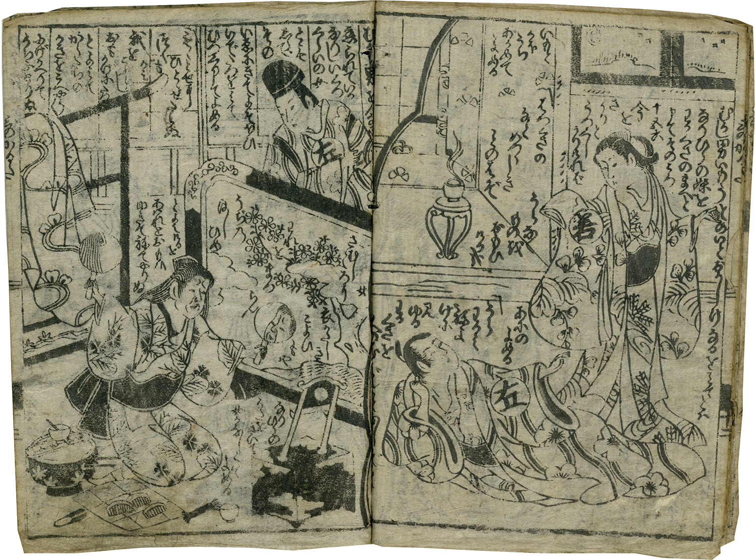 [鱗形屋板] 中本17×12.5糎 〔柱書〕哥かるた 第1丁、4丁落丁 黒本