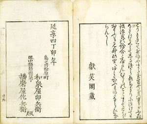 播磨屋佐兵衛、和泉屋卯兵衛板 烏有主人假托序 中本15.2×10.2糎 京浪花女郎揚屋名寄