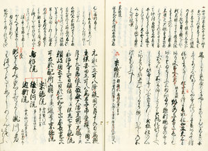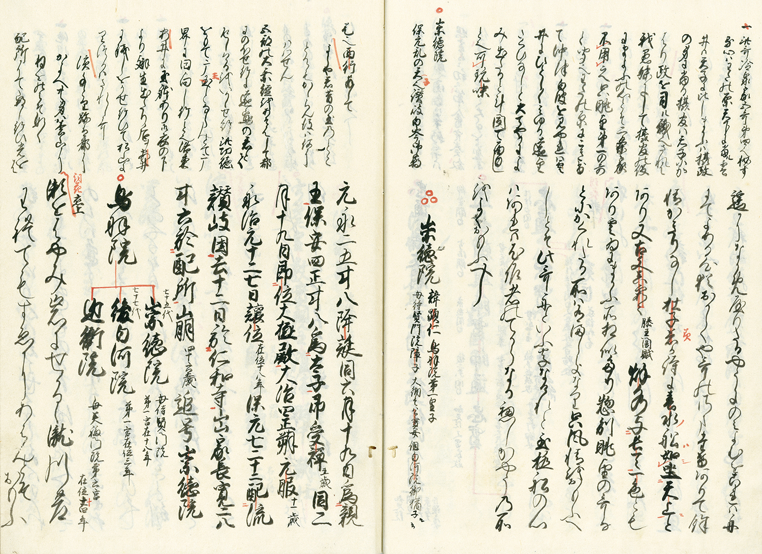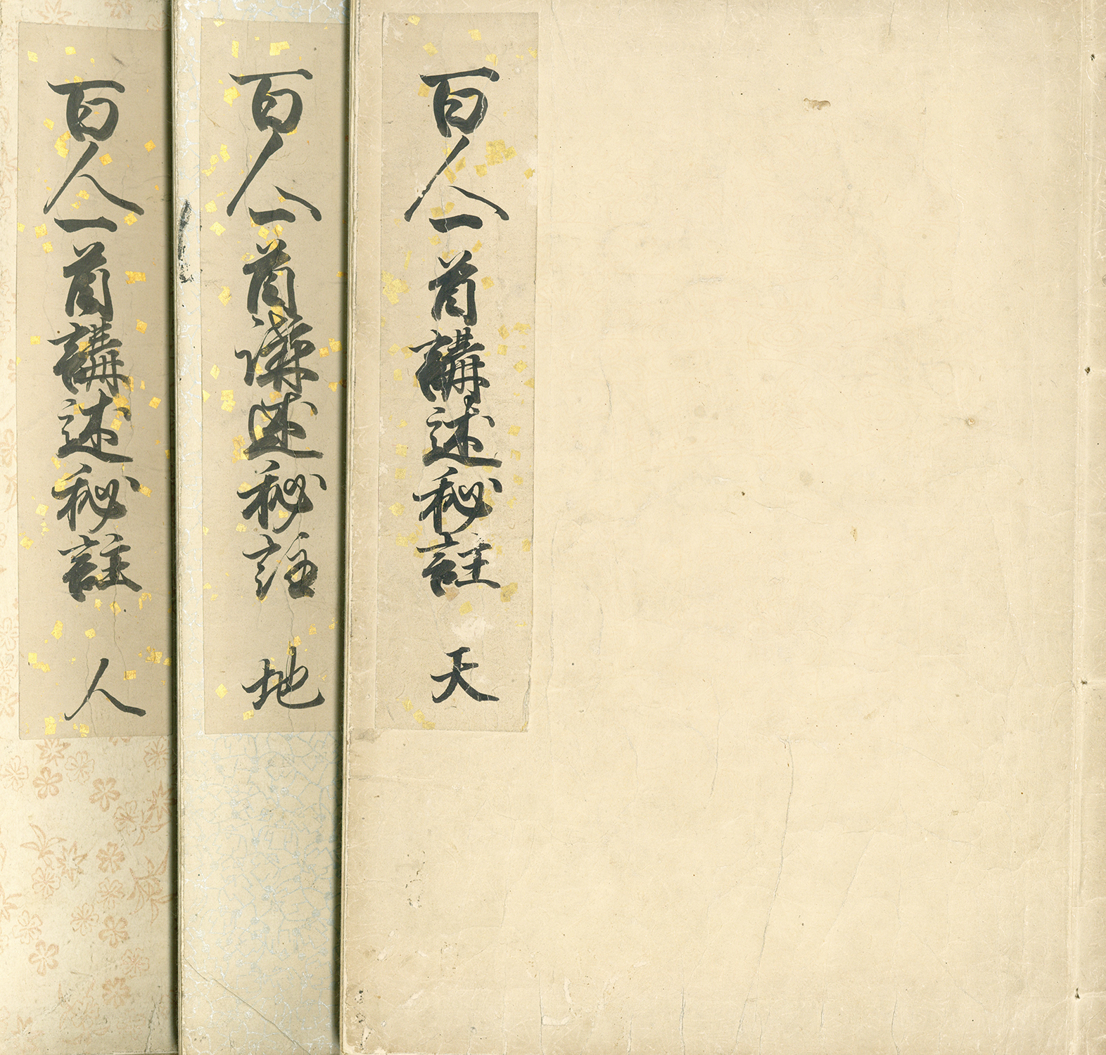 48丁・45丁・41丁 28.4×20.3糎 装飾表紙 金小箔散し題簽 朱合点 朱書入 蔵書印