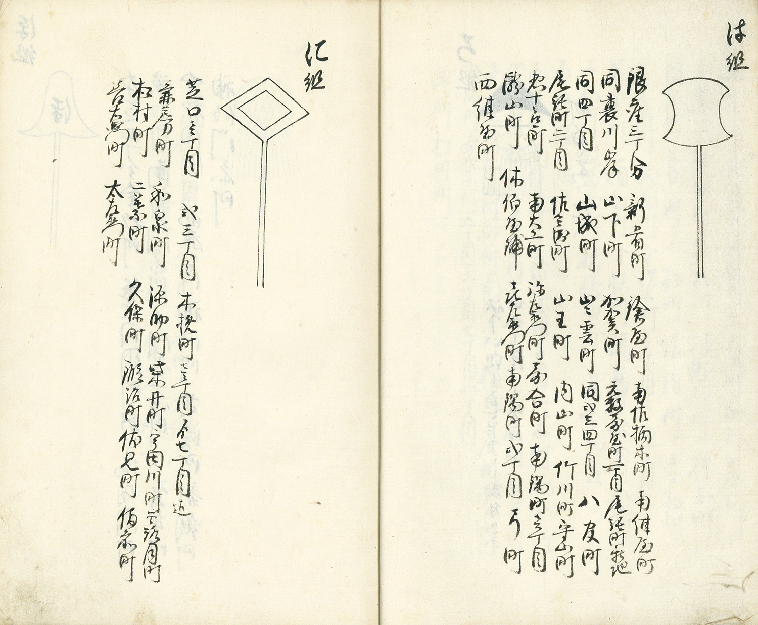 24.5×16.8糎 24×16.3糎 松島彦八旧蔵 享保三年いろは組火消始他の写し いろは組纏古図61丁 町々古代纏付53丁