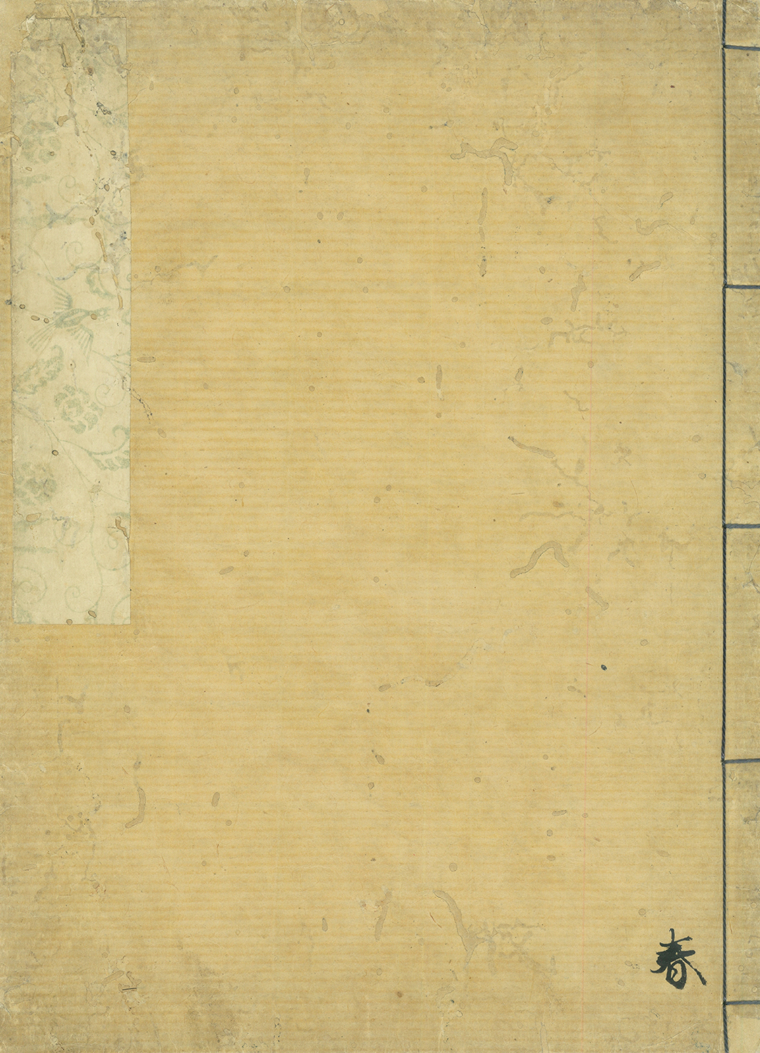 9丁半 大本27.7×20.1糎 唐紙題簽 有吉保旧蔵(蔵書印有)吉沢義夫旧蔵(蔵書印有) 大虫損裏打補修