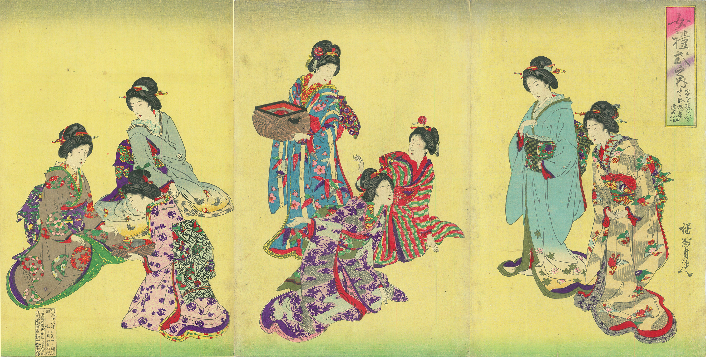 樋口銀太郎板 大判錦絵35.8×70.4糎 裏打 3枚続