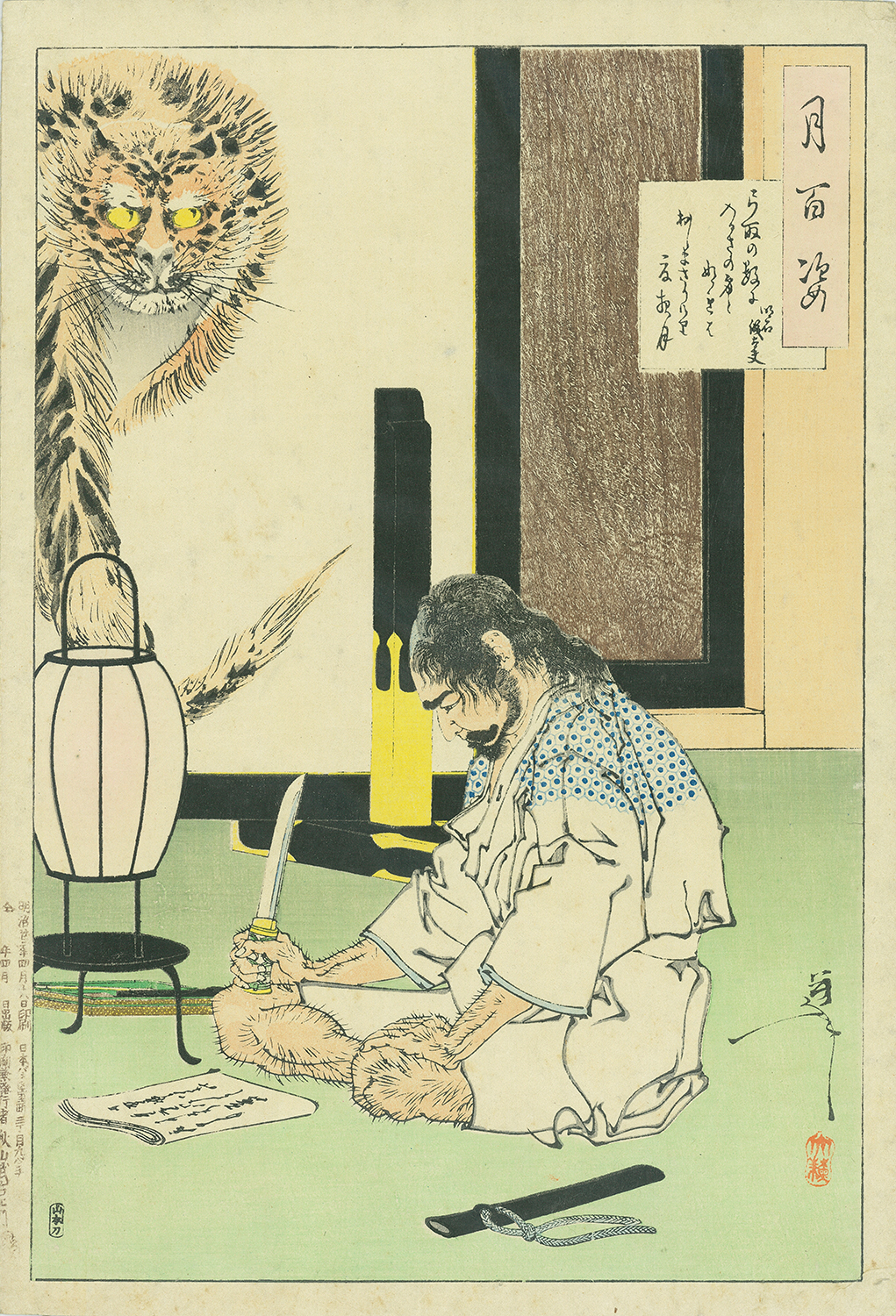 月百姿 弓取の数に入るさの身となればおしまさりけり夏夜月 明石義太夫