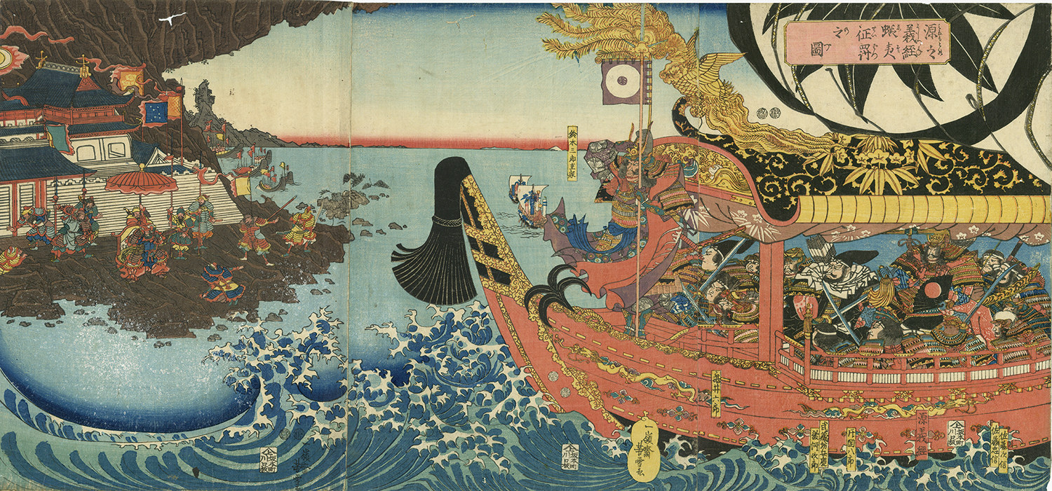 川口屋宇兵衛板 大判錦絵76.5×35.8糎 裏打 三枚続一組