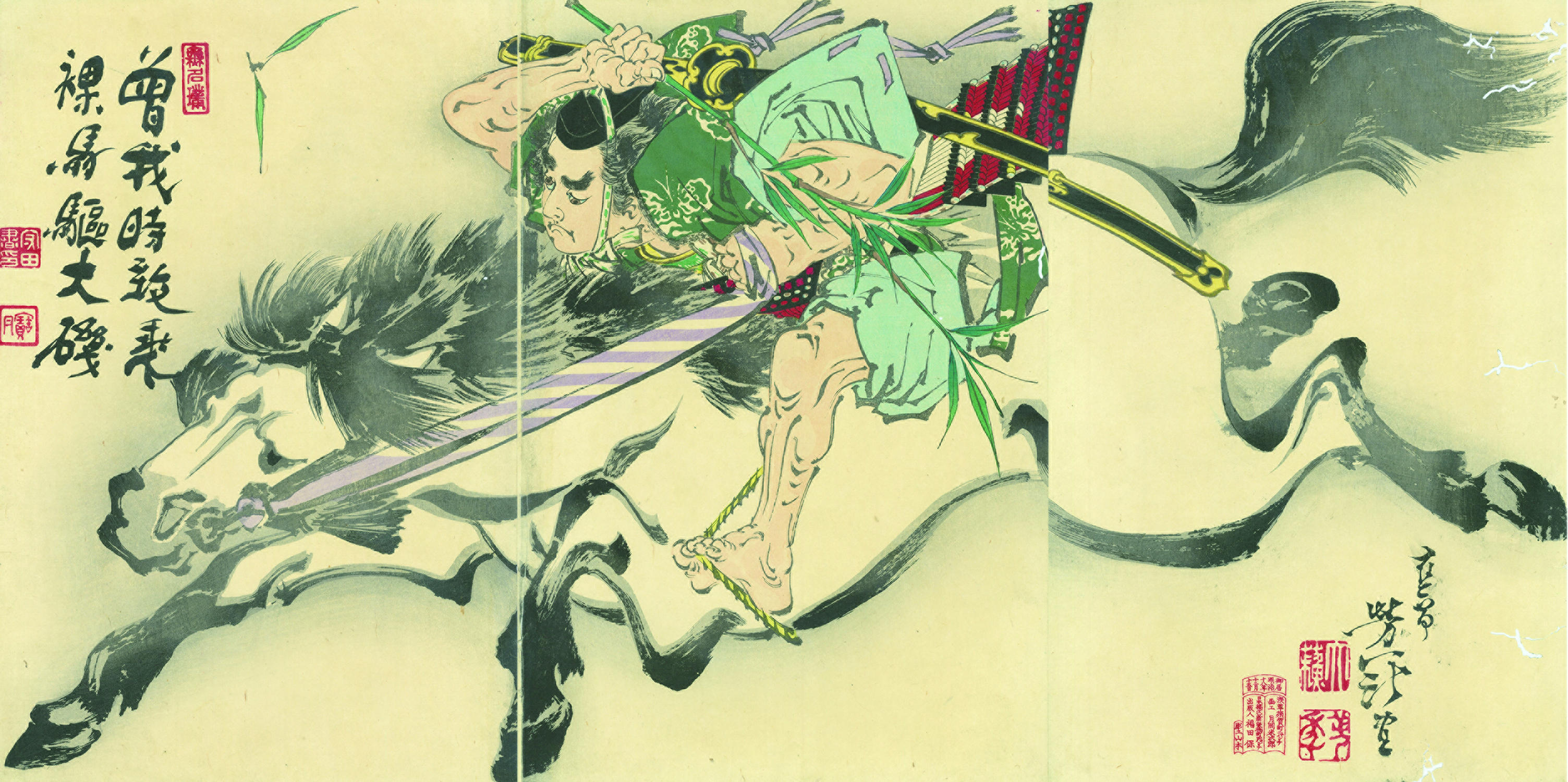 「曽我時致乗裸馬駆大磯」Soga Gorō Riding on Horseback to Ōiso